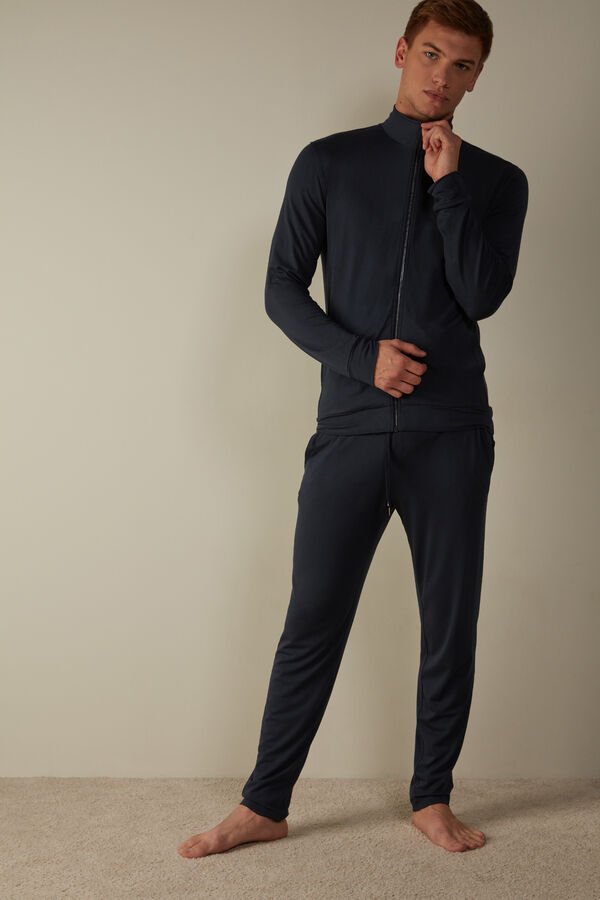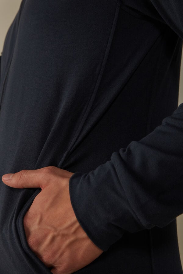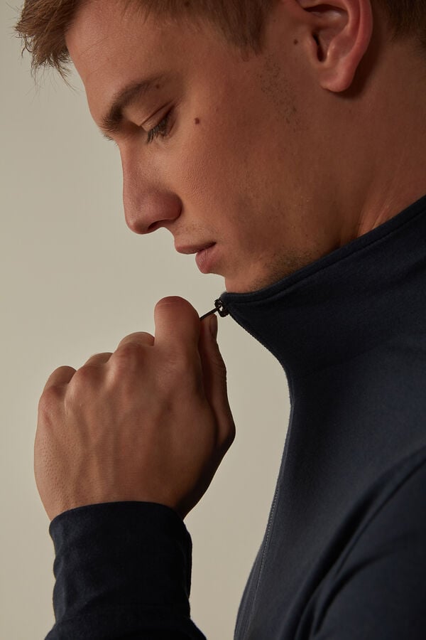 Elevate your casual wardrobe with this blue zip-up sweatshirt from Intimissimi. Crafted from a luxurious silk and modal blend, it offers a soft feel and comfortable fit. Designed for men who appreciate style and comfort, this sweatshirt features a sleek zip closure and is available in multiple sizes. Perfect for lounging or layering, it combines functionality with elegance.