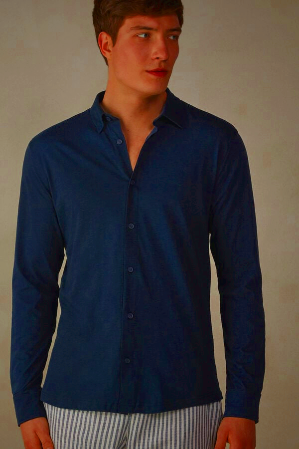 Elevate your casual wardrobe with this blue slub cotton shirt from Intimissimi. Designed for comfort and style, it features a classic fit and is available in multiple sizes. Perfect for everyday wear, this men’s knitwear piece combines quality fabric with timeless design.