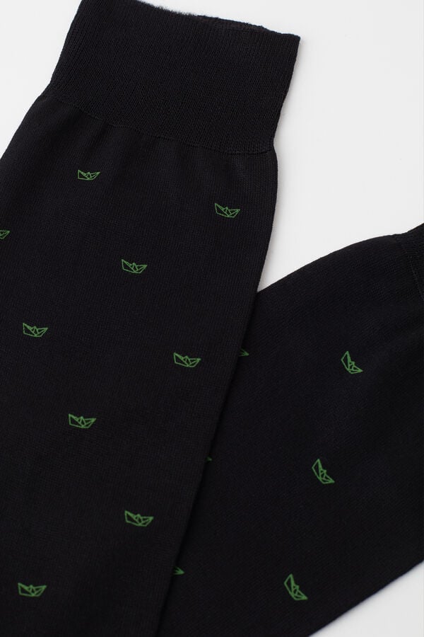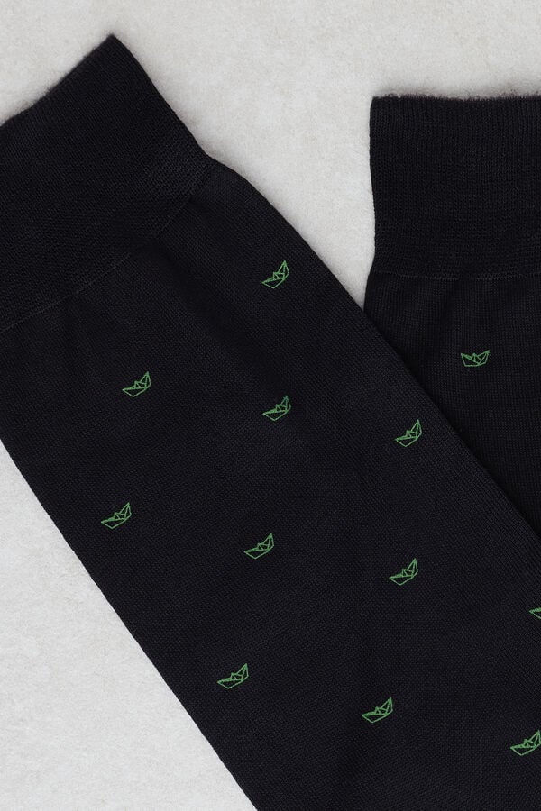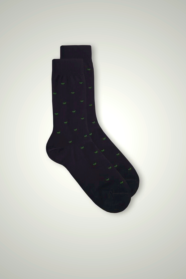 Intimissimi Men's Long Patterned Lisle Cotton Socks - Deep Grey