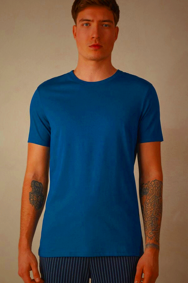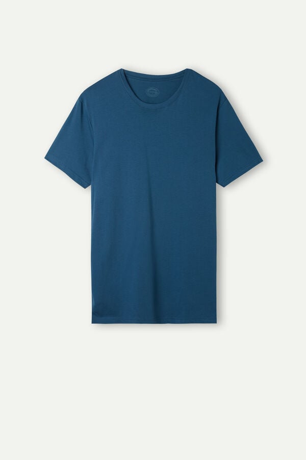 Intimissimi Men's Short Sleeve Crew Neck T-Shirt in Supima Cotton Blue