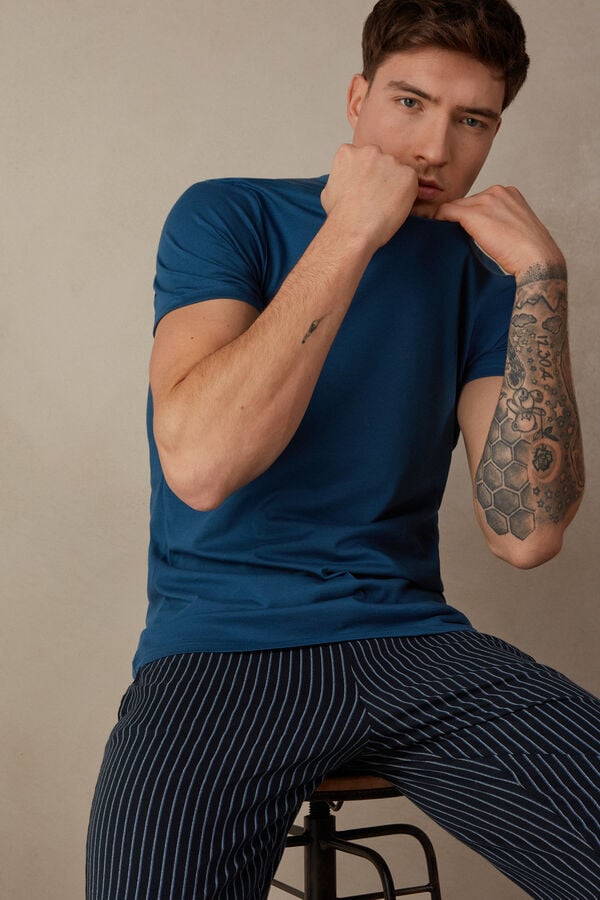 Elevate your sleepwear collection with this Intimissimi short sleeve crew neck T-shirt. Crafted from premium Supima® cotton for exceptional softness and durability. Available in classic white and blue colorway. Ideal for comfortable lounging or sleeping. Comes in a range of sizes from XXS to XXL for the perfect fit.