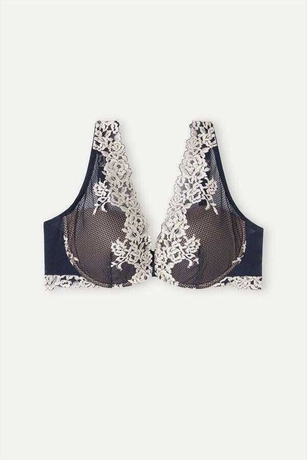 Elevate your lingerie collection with the Intimissimi Pretty Flowers Elena Balconette Bra. Designed for comfort and style, this balconette bra features a beautiful floral pattern in deep blue and light yellow. Perfect for women seeking a blend of elegance and support in their everyday wear.