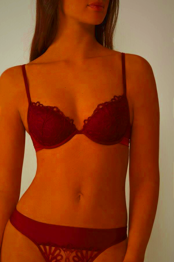 The Intimissimi push-up bra in dark red is absolutely stunning! The lace detailing is delicate yet durable, and the fabric feels soft against the skin. I ordered a 34B and the fit is perfect – snug but not tight, with great support for everyday wear. The push-up effect is subtle but noticeable, enhancing my natural shape beautifully. While it’s a bit pricier than some bras, the quality and comfort make it worth the investment. Perfect for both work and special occasions.