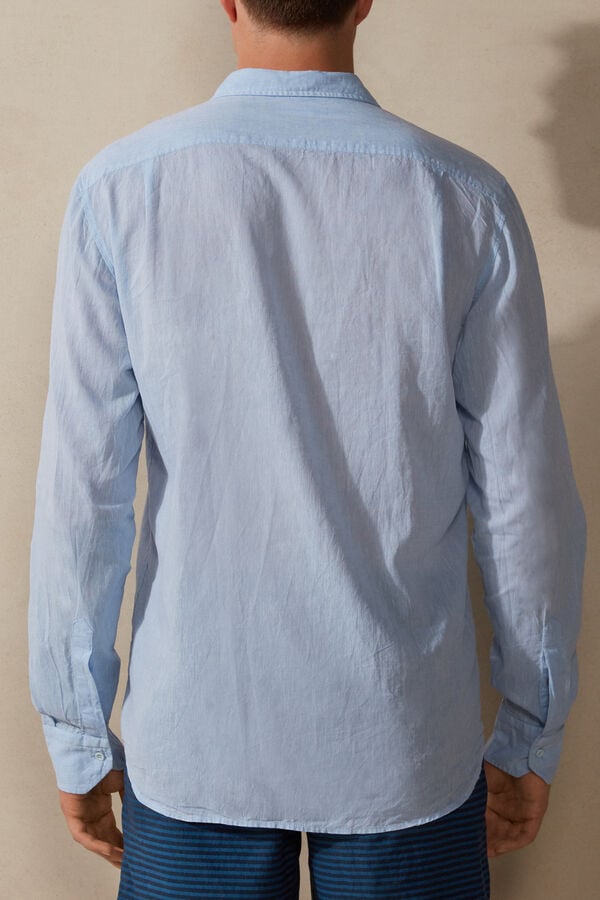 Elevate your wardrobe with this light blue linen and cotton shirt from Intimissimi. Designed for comfort and style, it features a classic fit and premium fabric blend, perfect for casual or semi-formal occasions. Available in a range of sizes from XXS to XXL.