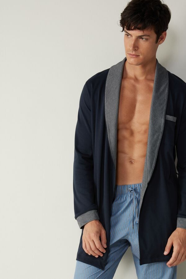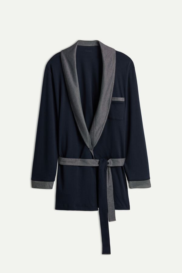 Elevate your loungewear collection with this men’s smoking jacket from Intimissimi. Crafted from soft interlock cotton, it offers a comfortable fit and stylish design. Perfect for relaxing at home or layering over pajamas. Available in multiple sizes from XXS to XXL.
