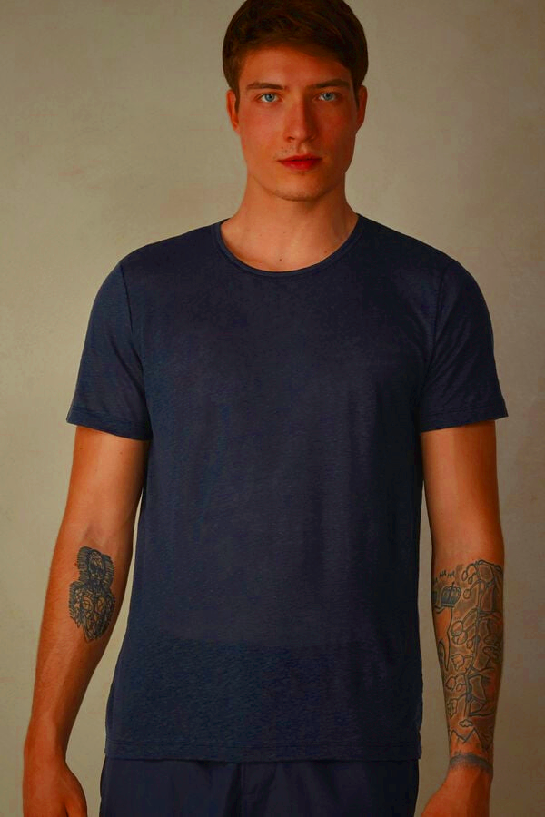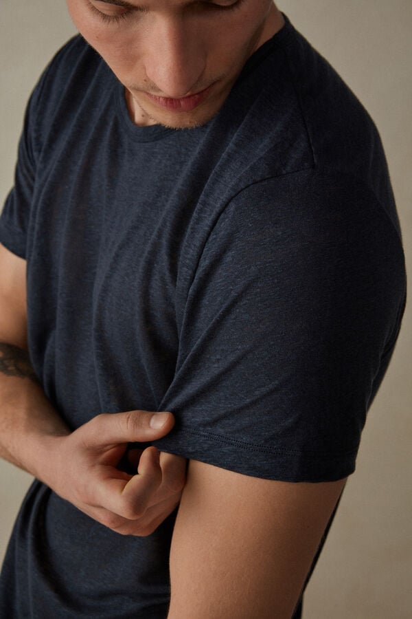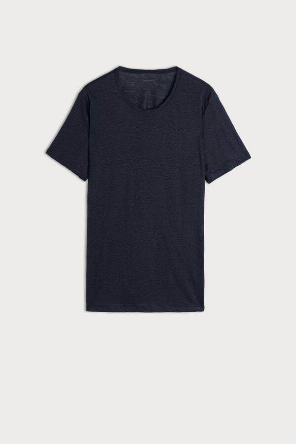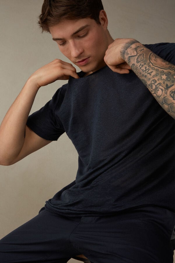 Men’s Intimissimi Blue Linen Short-Sleeve Shirt
