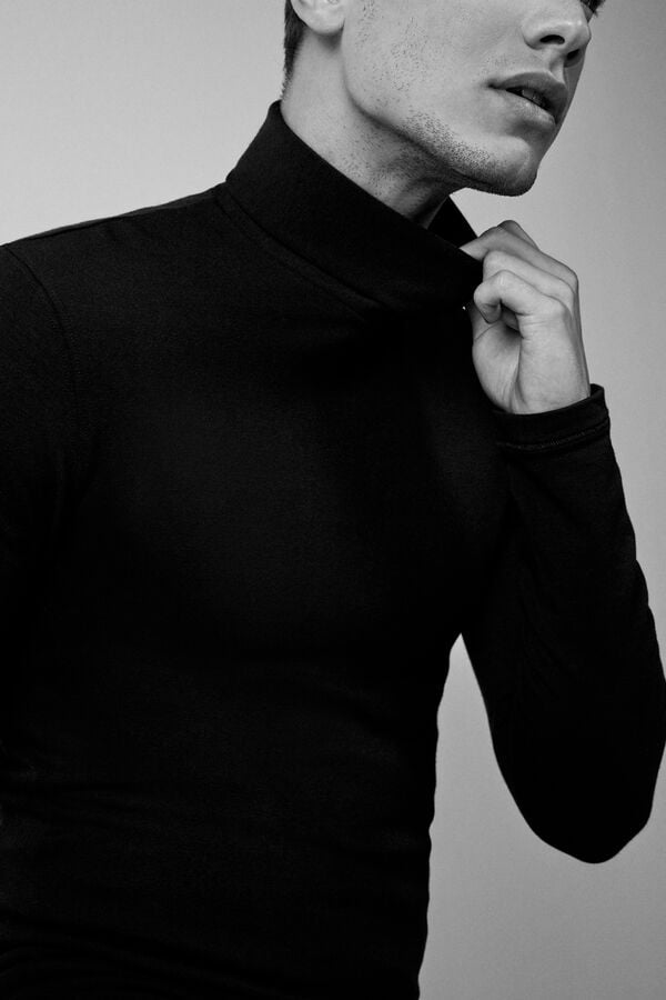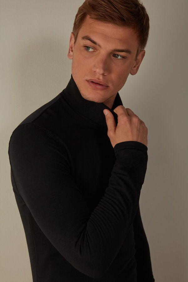 Elevate your wardrobe with this premium men’s high-neck top from Intimissimi. Crafted from a luxurious modal-cashmere blend, it offers superior comfort and a sleek fit. Perfect for layering or wearing on its own, this black knitwear piece combines style and functionality for everyday wear.