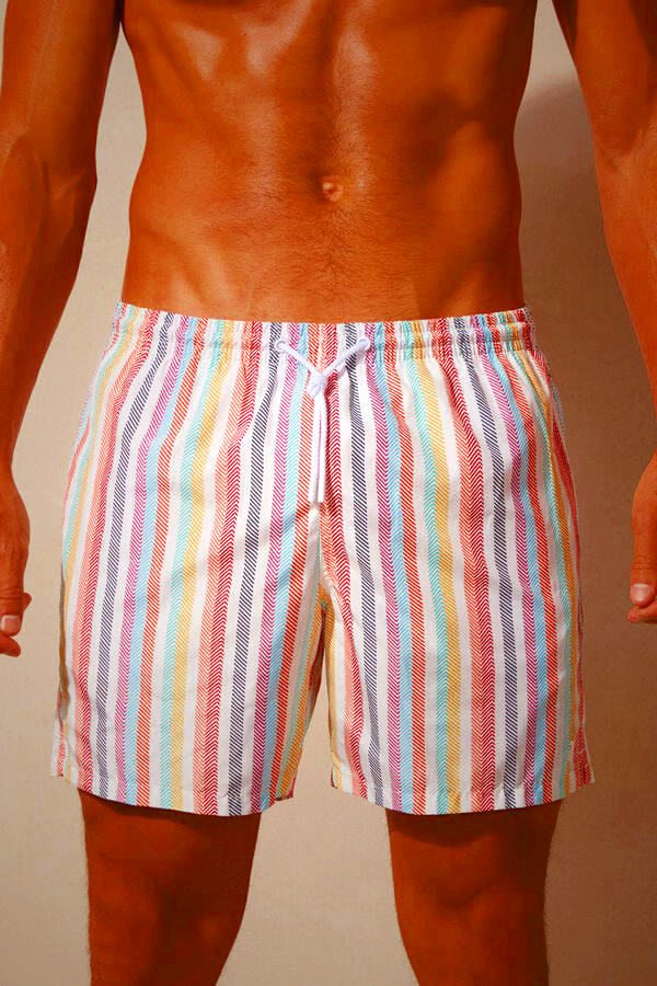 Elevate your swimwear collection with these vibrant multicolor stripe swim shorts from Intimissimi. Designed for comfort and style, they feature a classic fit and are available in multiple sizes. Perfect for beach days or poolside lounging.