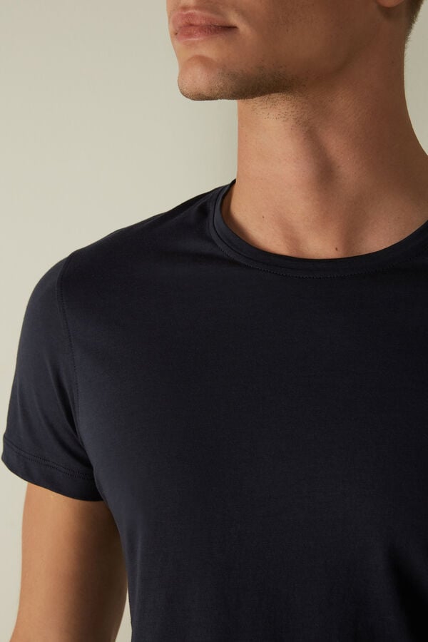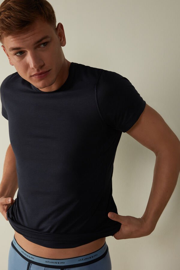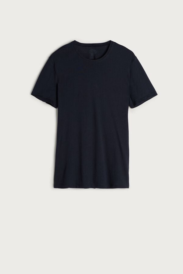 Elevate your sleepwear collection with this men’s short-sleeve crew-neck t-shirt from Intimissimi. Crafted from premium Extra-Fine Supima® cotton for unmatched softness and comfort. Available in classic blue and a range of sizes from XXS to XXL. Perfect for lounging or sleeping, this lightweight and breathable t-shirt offers a relaxed fit that feels gentle against the skin. Experience luxury and comfort every night.