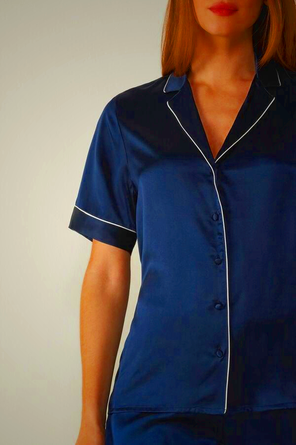 Elevate your loungewear collection with this elegant short sleeve silk shirt from Intimissimi. Designed with delicate contrast trim details, this blouse offers a sophisticated look whether you’re relaxing at home or stepping out. Available in a range of sizes from XXS to XXL, it ensures a perfect fit for every woman. The lightweight silk fabric provides comfort and breathability, making it ideal for all-day wear.