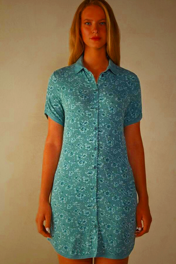 Elevate your sleepwear collection with this elegant button-up night shirt from Intimissimi. Featuring a charming prairie bouquet design, this green night shirt offers a perfect blend of comfort and style. Crafted from soft, breathable fabric, it ensures a restful night’s sleep. Available in multiple sizes for the perfect fit.