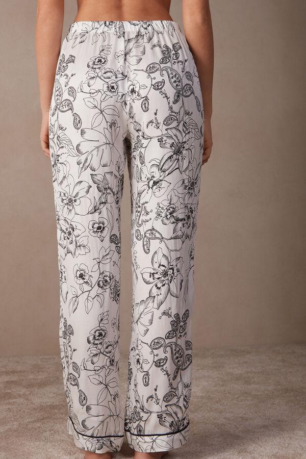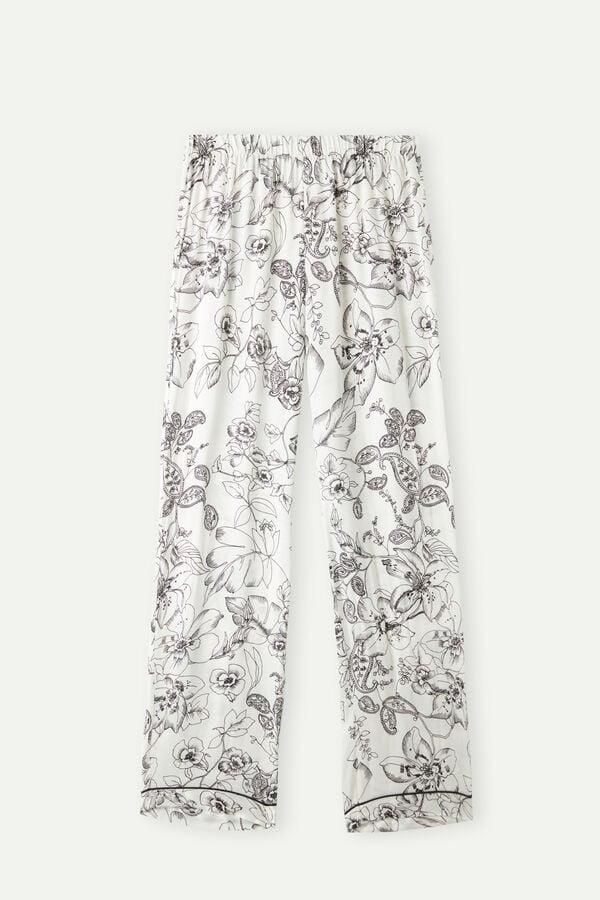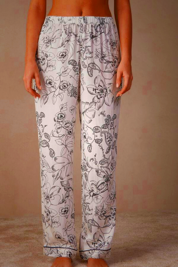 Elegant full-length satin pajama pants by Intimissimi in white and grey. Designed for comfort with a luxurious feel, perfect for relaxing or sleeping.