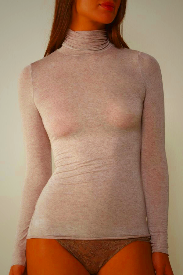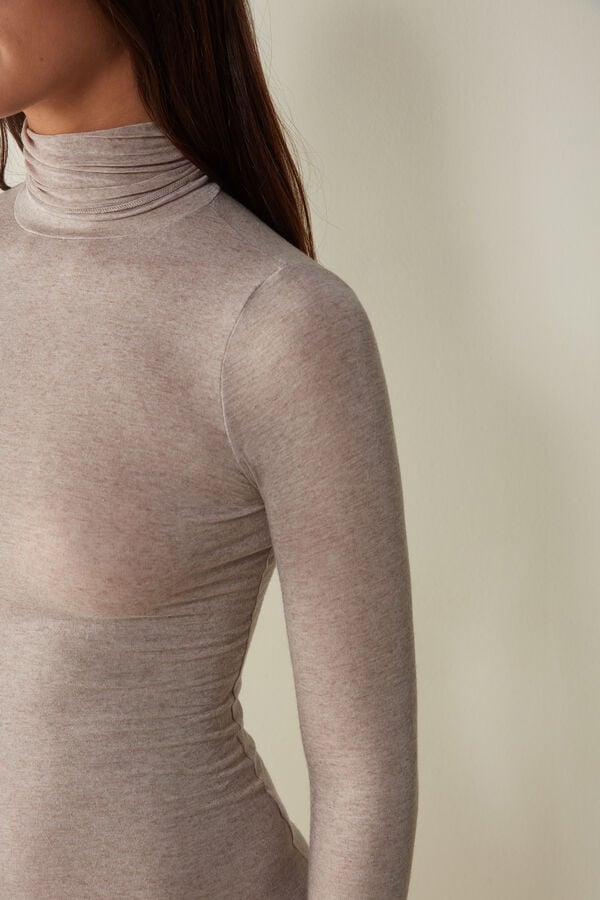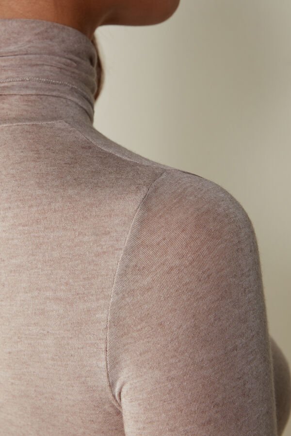 Elevate your wardrobe with this beige high-neck top from Intimissimi, crafted from a luxurious modal cashmere blend. Designed for comfort and style, this ultralight knitwear piece offers a sleek fit and premium softness. Perfect for layering or wearing on its own, it’s a versatile addition to any woman’s closet.