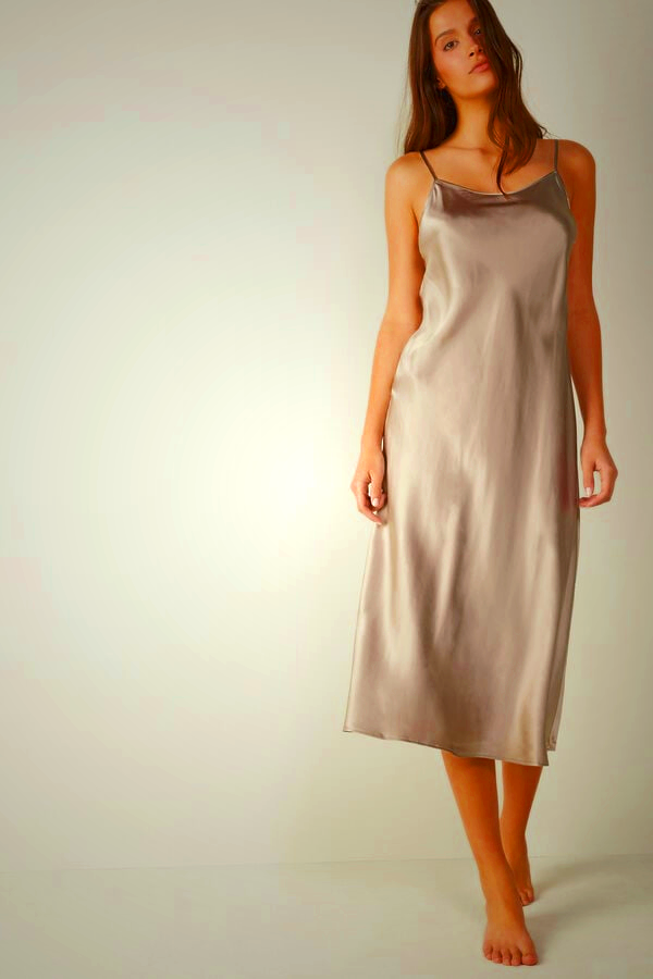 Elevate your lingerie collection with this elegant beige midi-length slip from Intimissimi. Crafted from luxurious silk, it offers a perfect blend of comfort and sophistication. Available in sizes XXS to XXL, this slip is designed to flatter every figure. Ideal for special occasions or everyday elegance.