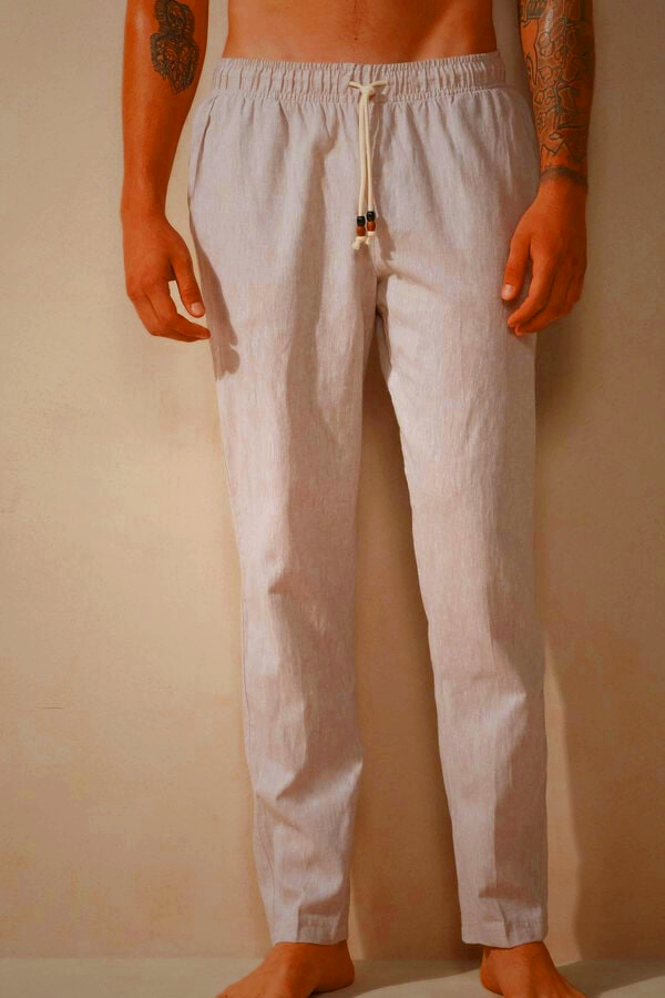 Elevate your everyday style with this beige and white full-length men’s clothing from Intimissimi. Crafted from a premium blend of linen and cotton, this piece offers breathability, comfort, and a sleek fit. Available in sizes XXS to XXL, it’s perfect for casual or relaxed wear. The lightweight fabric ensures all-day comfort, making it an essential addition to your wardrobe.