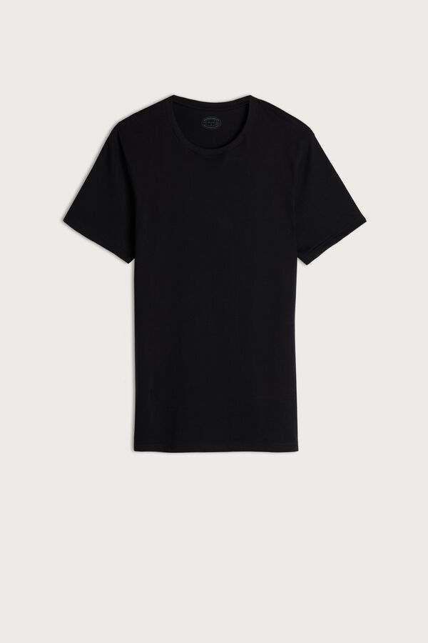 Elevate your sleepwear with this black short sleeve crew neck T-shirt from Intimissimi, crafted from premium Supima® cotton for unmatched softness and comfort. Designed for men, this tee offers a relaxed fit and timeless style, perfect for lounging or sleeping. Available in a range of sizes from XXS to XXL to ensure the perfect fit.