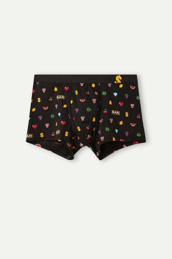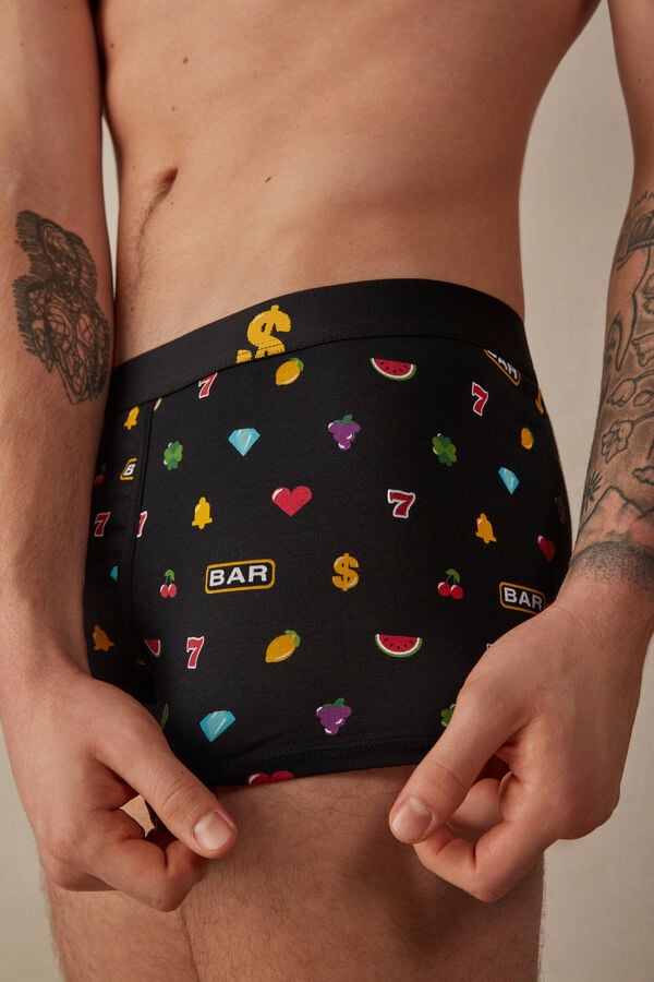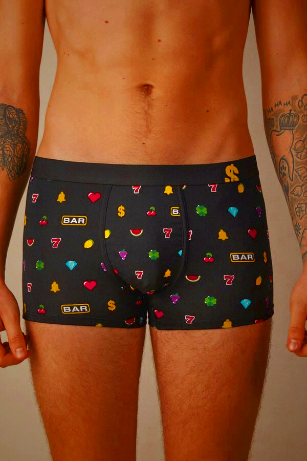 Premium black men’s underwear by Intimissimi featuring a slot machine design, made from soft stretch Supima® cotton for all-day comfort.
