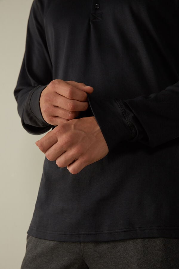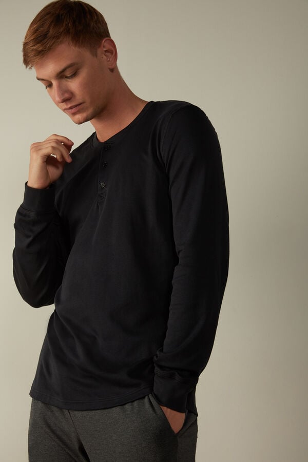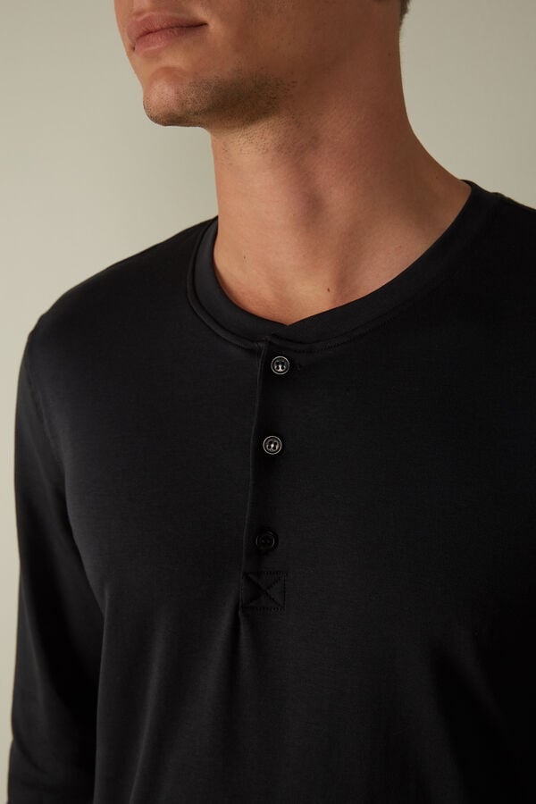 Elevate your sleepwear with this black long-sleeve top from Intimissimi, crafted from premium Supima interlock fabric for unmatched comfort and softness. Designed for men who value quality and style, this top is available in a range of sizes from XXS to XXL, ensuring a perfect fit. The sleek black color adds a touch of sophistication to your loungewear collection, making it ideal for relaxing at home or sleeping comfortably through the night.