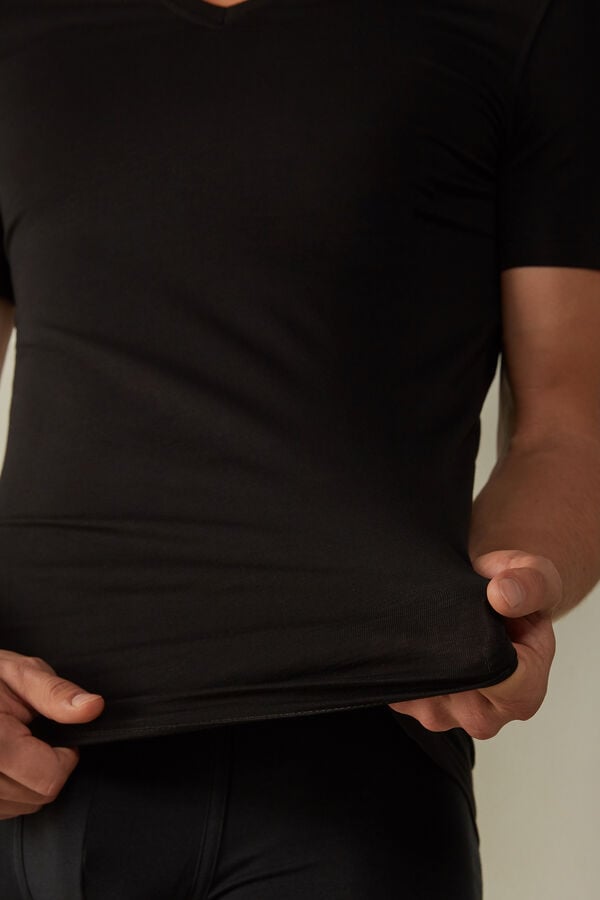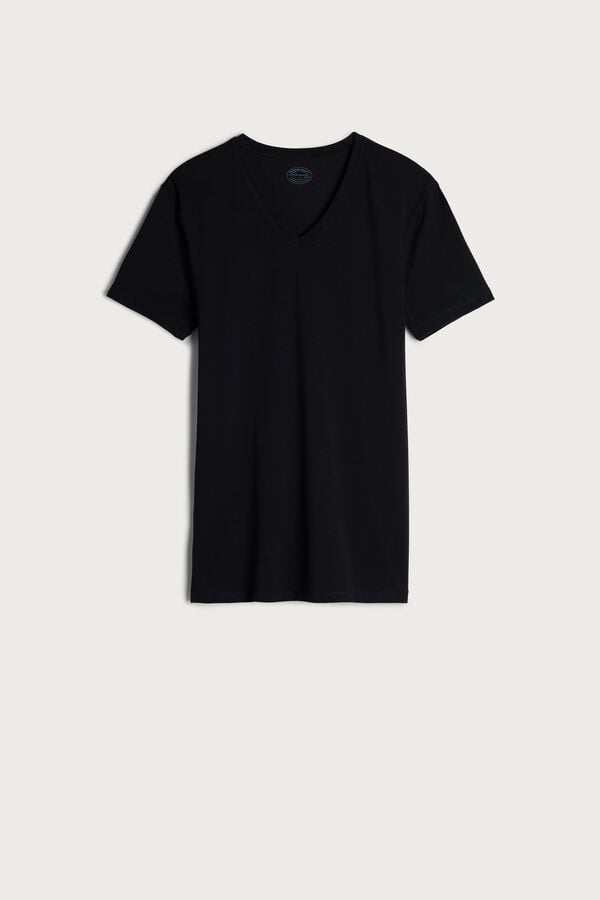 Elevate your wardrobe with this black V-neck sweater from Intimissimi, crafted from premium stretch Supima® cotton for unmatched comfort and durability. Designed for a perfect fit, it features a sleek V-neckline and is available in sizes XXS to XXL. Ideal for casual or semi-formal styling, this men’s knitwear combines luxury fabric with timeless design.
