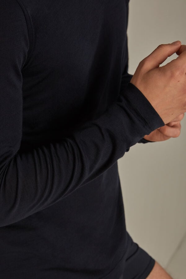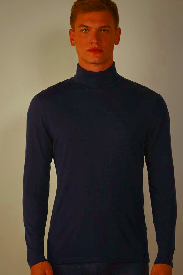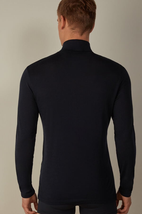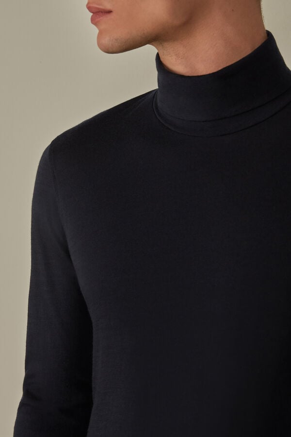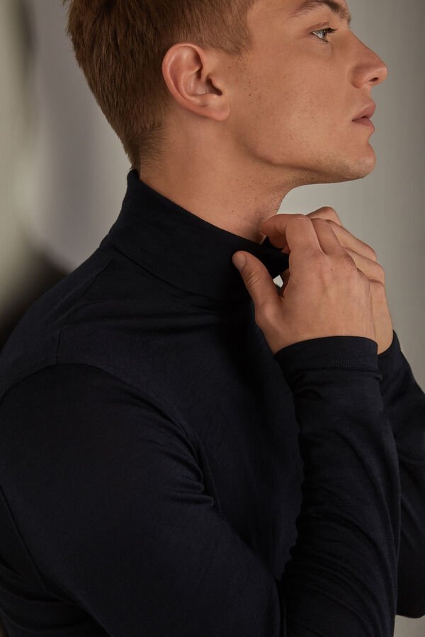 A premium blue high-neck merino wool top for men by Intimissimi. Offers warmth, comfort, and a refined look.