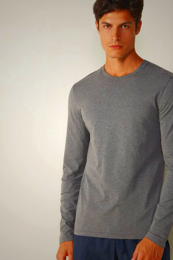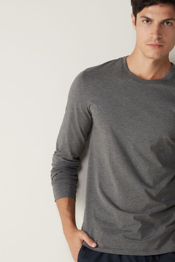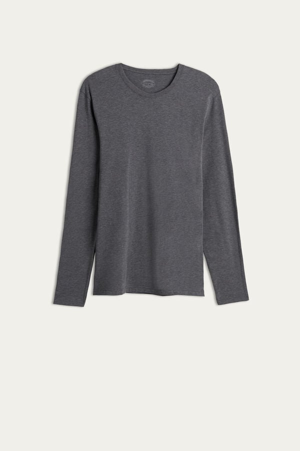 Deep Grey Mens Intimissimi Long-Sleeve Supima Cotton Top