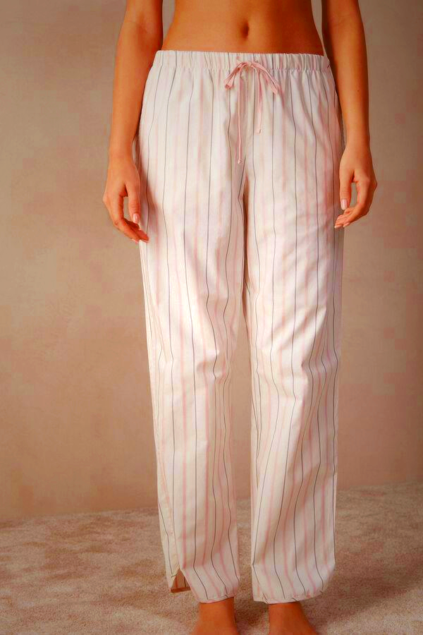 Intimissimi soft spring full-length cotton cloth pants in beige and pink stripes. Designed for women, these pajama pants offer comfort and style for a restful night’s sleep. Available in sizes XXS to XXL.