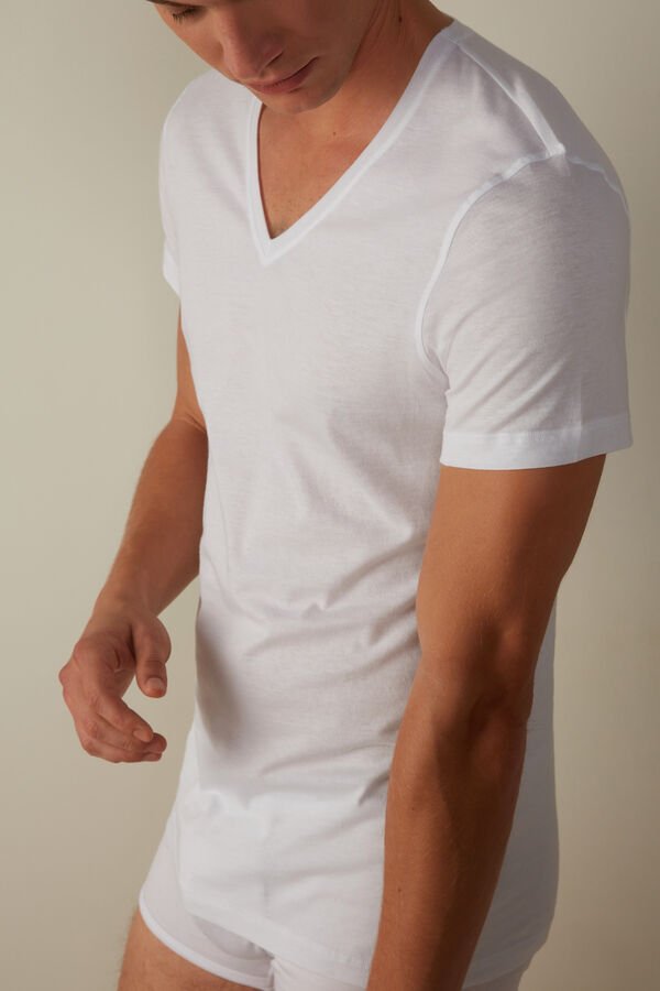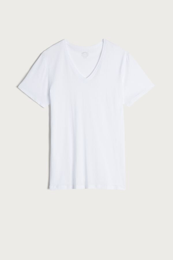 Elevate your everyday wardrobe with this men’s short-sleeve V-neck shirt from Intimissimi. Crafted from premium extra-fine Supima® cotton, it offers a soft feel and lasting comfort. Designed for a perfect fit, it’s available in a range of sizes from XXS to XXL. Ideal for casual wear or layered looks, this white knitwear piece combines style and functionality.
