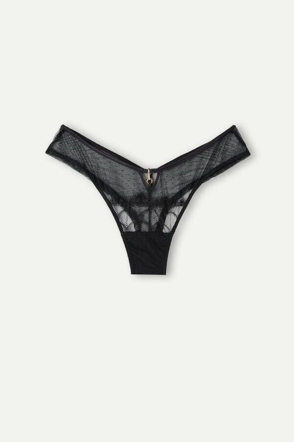 Intimissimi Pure Charme ’80s Style Brazilian panties in black. Flattering fit with nostalgic 1980s design. Available in sizes XXS to XXL.