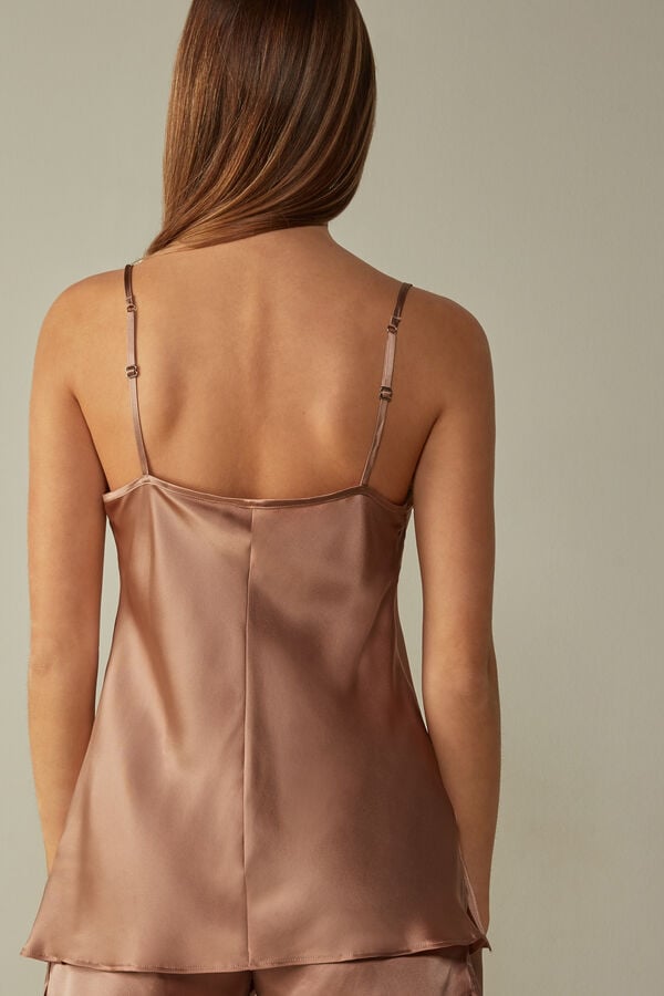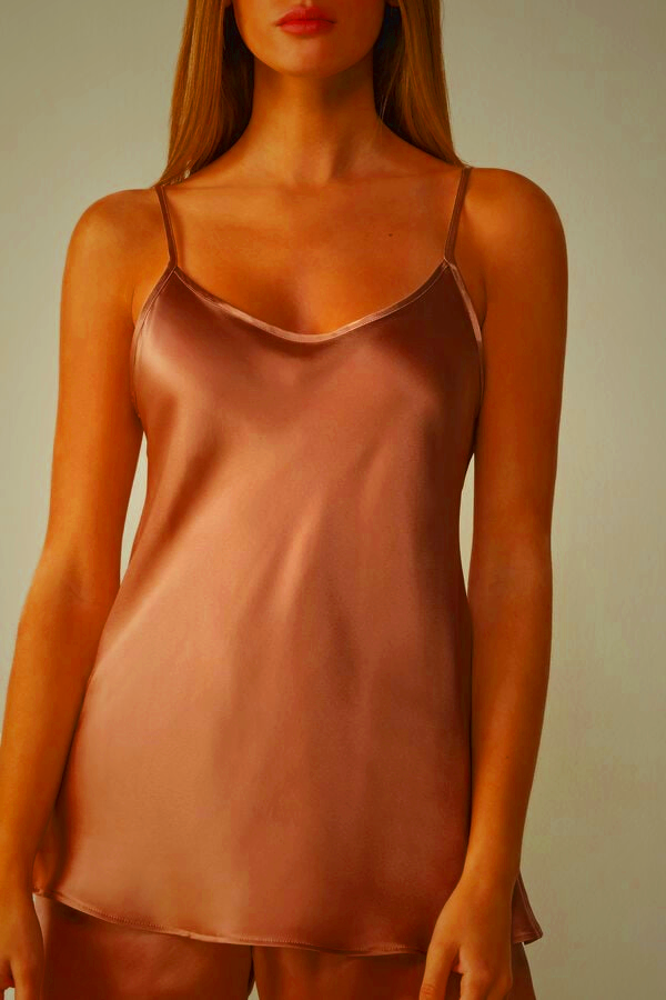 I purchased the Intimissimi silk satin top in pink and I’m quite pleased with my choice. The fabric feels luxurious against the skin – true silk satin that drapes beautifully. I ordered size S and it fits perfectly, hugging my figure without being too tight. The pink color is soft and elegant, exactly as described. While the price point is a bit high for knitwear, the quality justifies the cost. It’s become my go-to piece for dressing up casual outfits. Only minor issue is that it requires delicate care when washing.