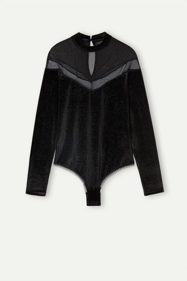 Intimissimi Under the Stars collection features elegant velvet and tulle lingerie for women. This black lingerie set offers a luxurious feel with a perfect fit in sizes XXS to XXL. Ideal for special occasions or everyday elegance.