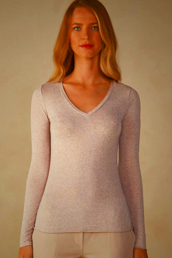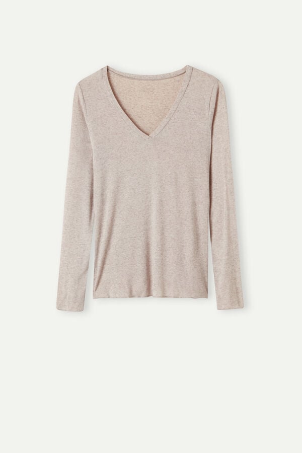 Elevate your wardrobe with this women’s V-neck top from Intimissimi. Crafted from a luxurious modal and cashmere blend, this beige knitwear piece offers a soft touch and comfortable fit. Designed with a flattering V-neckline, it’s perfect for layering or wearing on its own. Available in sizes XXS to XXL, this stylish top combines comfort and elegance for everyday wear.