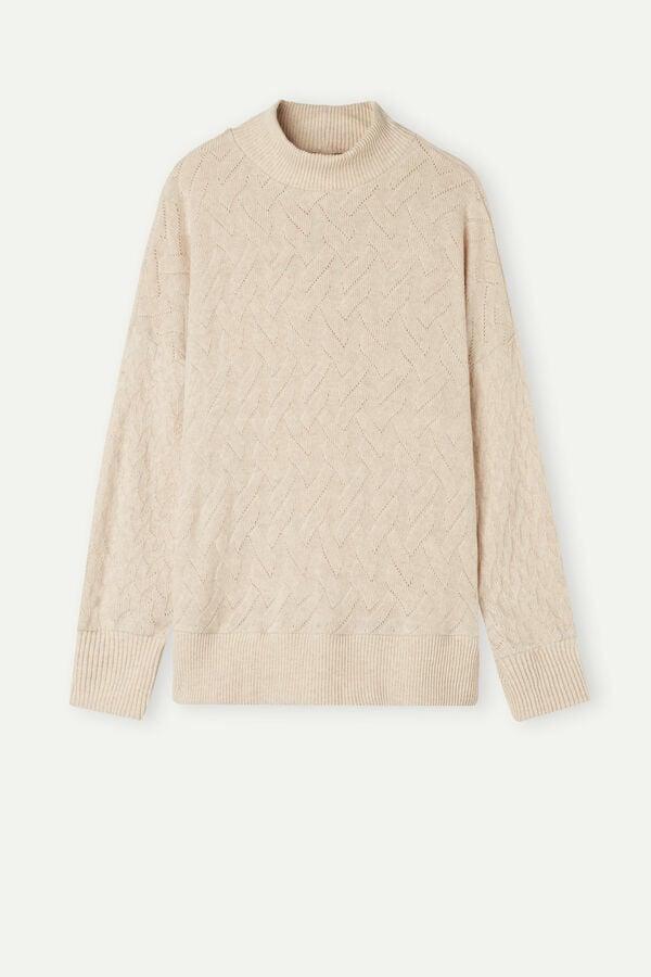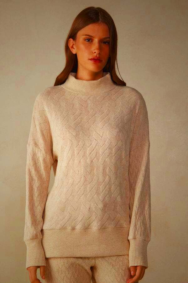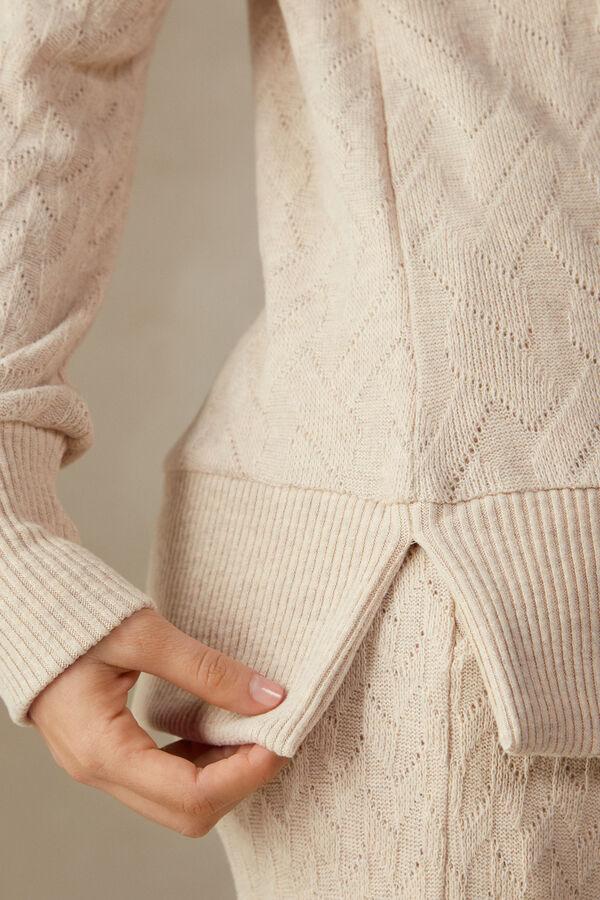 Women’s Intimissimi Winter Braid Long Sleeve Jacquard Top Beige