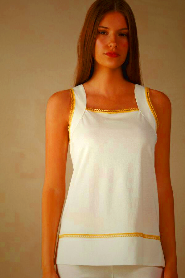 Upgrade your loungewear with this women’s yellow submarine tank top from Intimissimi. Crafted from premium Supima® Ultrafresh cotton for lasting comfort and breathability. Available in white, this stylish tank top offers a relaxed fit and soft feel, perfect for all-day wear. Ideal for pajamas or casual home outfits.